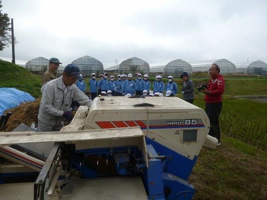 10月26日、さわやかな秋晴れの下、5年生の脱穀活動が行われました。今日もお忙しい中、たくさんの田んぼの先生がお越しくださり、ご指導していただきました。子供たちは一列になり、自分たちが刈り取った稲の束を手にして並びます。その後、田んぼの先生に手取り足取り教わりながら脱穀を体験しました。ハーベスタという機械に稲の束を入れていきます。手を巻き込まれないように十分注意しながら作業しました。この機械も地域の方よりお借りしてきたことをお聞きしました。感謝です!!すべての脱穀が終わりました。こんなにたくさんの米が収穫できました。田んぼの先生は、「一袋30キロはあるんじゃないかなあ。」と、おっしゃっていました。どれくらいとれたのか本当に楽しみです。最後はみんなで後片付け。落ちている藁を拾い、田んぼに返していました。「これが田んぼの肥料になるんだよ。」田んぼの先生に教えていただきました。田んぼの先生方、今年一年間大変お世話になりました。田植え、稲刈り、脱穀以外の作業は、すべて田んぼの先生方にやっていただきました。心より感謝申し上げます。収穫した米は、今後千倉交歓会の折に使わせていただく予定です。ありがとうございました。