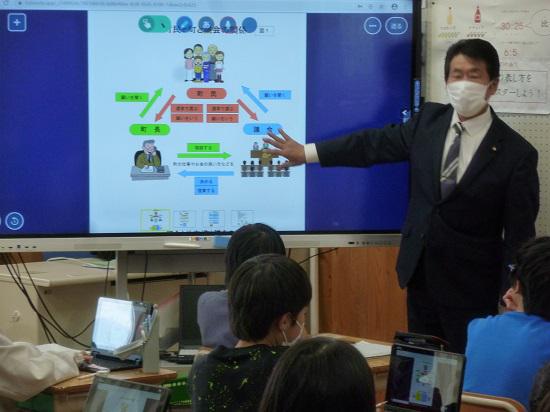 11月8日、今月末に開催されます「いいで子ども議会」に係る学校説明会が行われました。この日は、屋嶋議員様と色摩議会事務局長様にご来校いただき、町民と町と議会の関係や本会議の流れなど、詳しく教えていただきました。本校からは、当日2名の子ども議員が学校を代表して一般質問を行います。一っ子フェスティバルで6年生が発表したアイディア(DVDをご購入された方は後ほどご覧ください。)のうち、話し合いで2つに絞ったものを発表するとのことでした。子ども議会当日は、インターネットでも配信されるということですので、どうぞお楽しみにしてください。