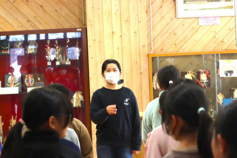 本日の全校朝会は、お世話になった先生のお話と、冬休みのくらしについてでした。本日が最終勤務である非常勤講師の先生よりお話があり、代表児童から花束を渡しました。その後、担当より冬休みのくらし方についてお話がありました。子供たちからは、「冬休みも手伝いをがんばりたい」「冬の危険に気を付けて過ごしたい」「計画的に学習を進めたい」という感想が出されました。