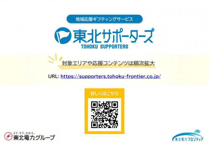 地域応援ギフティングサービス「東北サポーターズ」とは?地域やふるさとを応援する想いを気軽にインターネット上でお届けできる「ギフティング」の仕組みを活用したサービスです。具体的には、「東北サポーターズ」のプラットフォーム上で入手したギフティング用のポイントを、お好きなデジタルギフトに交換し、応援のメッセージを添えて、地域やふるさとの団体等にお届けできます。また、デジタルギフトを贈った方には、限定グッズや特別体験の提供のほか、地域やふるさとの団体等から直接御礼のメッセージが届く等、双方向のコミュニケーションにより、絆を深めることができます。今回、応援コンテンツとして、山形県の「蔵王樹氷まつり」「上杉雪灯篭まつり」のサービス提供が開始されました。 47年の伝統を持つ、東北最大級の冬のおまつり「上杉雪灯篭まつり」をみなさん応援してください! ◇「東北サポーターズ」の概要はこちらをご覧ください。 ◇「東北サポーターズ」のご利用の流れはこちらをご覧ください。 ◇詳しくはこちらのQRコードから
