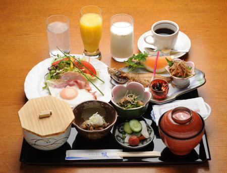 ご朝食はホテルベネックス米沢1F【レストラン楓】にて 、和か洋の日替わりセットメニューをご提供しております。和か洋を選択してお召し上がりいただけます。お米は山形県ブランド米の【つや姫】新鮮な地元野菜・卵・味噌・醤油を使用しております。山形や米沢の郷土料理がメニューとしてご提供されることもございます。営業時間 7:00〜9:30 (9:00までご入店お願いいたします)上記和食メニューは一例です ※【つや姫】は食感・食味の良い高品質なお米です☆有機栽培米と、農林水産省のガイドラインに従って栽培された特別栽培米に限定する等、その他一定の要件をクリアし、知事の認定を受けた生産者により生産されたお米です
