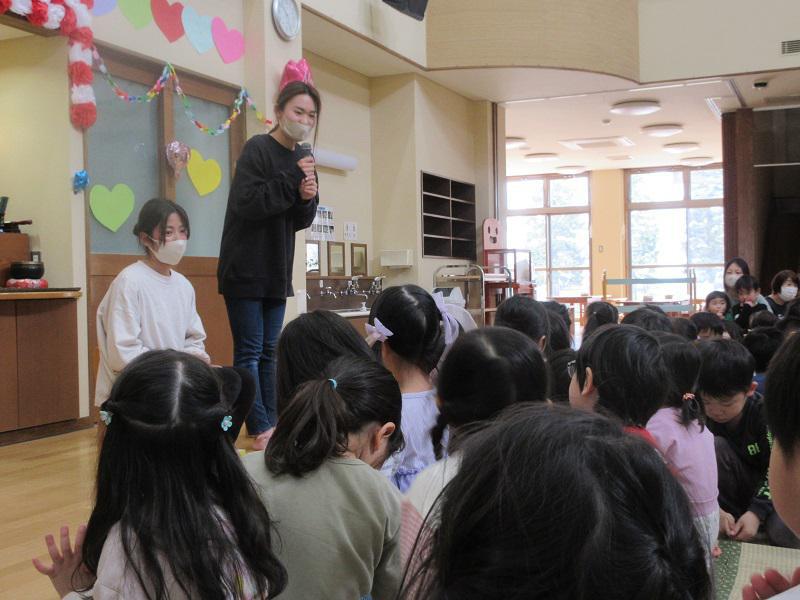 退職・異動される先生とのお別れ会が行われました。大好きだった先生とのお別れで、いっぱい遊んでくれたことやギュッとしてくれたことを思い出し、こどもも大人も涙涙のお別れ会となりました。 お別れは悲しいけれど、きっとまた新しい素敵な出会いが待っています。次の職場でも自分らしさを大切にして頑張ってください!東部のみんなで応援しています!