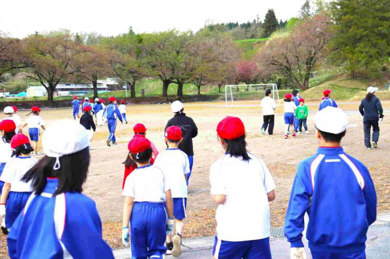 今年度も、木曜日の朝はさわやかタイムで始まります。今日は第1回目でした。第1回目の活動は、全校生でグラウンドの石や枝を拾う内容でした。縦割り班ごと、予め決められた場所に散らばって活動しました。枝が多かったようです。少し肌寒い天気でしたが、みんなで一生懸命に活動したおかげで、袋がいっぱいになりました。