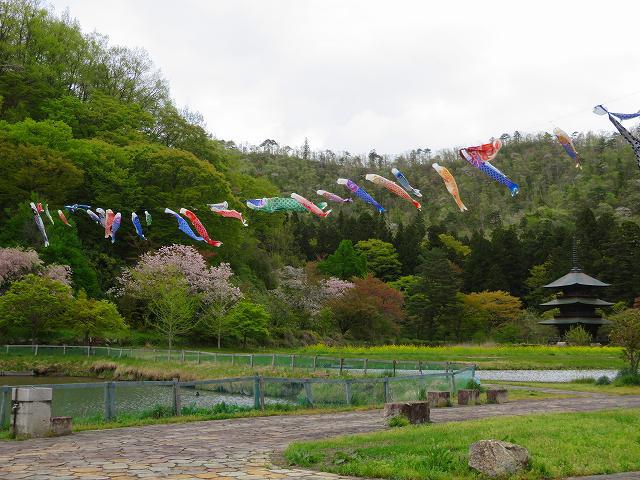 古の里歴史公園に、今年も「鯉のぼり」が元気に泳ぎはじめました!例年より早く、山の木々の葉っぱが淡い緑色に染まり、鯉のぼりが一層美しく、鮮やかに鑑賞できます。天気のいい日、お散歩しながら、この景色を見にお越しください♪