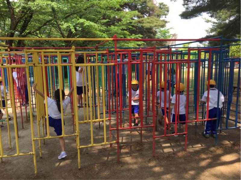 公園での遊びの様子です。歩いてきたばかりですが、みんな元気に遊んでいます。子供たちのパワーはすごいです。