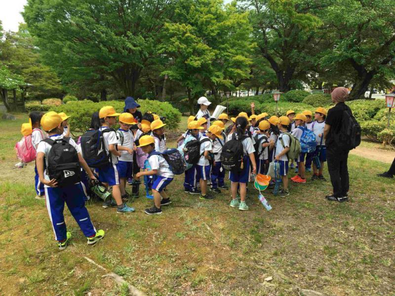 お弁当を食べた後は、いったん集合し、自分たちの使った場所にごみがないか点検です。しっかりときれいにして、スクールバスで学校に帰ってきました。約束の「安全に」「楽しく」活動できた遠足だったと思います。