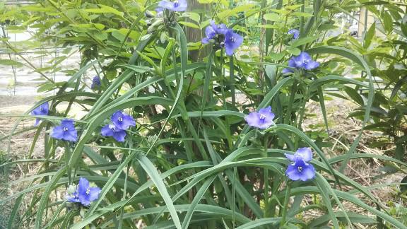 5月になってぼちぼちと花が咲いて、ここにきて花増えてきました・・我が家のムラサキツユクサ、3か所に植えてあります。一つ一つの花は1日でしぼんでしまいますが、5月からぼちぼちと咲き始め、6月から7月を中心に毎日次々と咲き続けます。晴れた暑い日は花が早くしぼみ、午後には花がない状態になりますが、雨天や曇天の日には夕方ごろまで咲いています。結構長い間、咲き続けます。