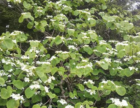 6月2日日曜日、運休整備中の天元台のリフト線下を散策、いろんな花が咲き始めてる、リフト下で割と大き目な木である、オオカメノキ、この葉っぱは先端が尖り、他の似た種類に比べると葉脈も目立ち、亀の甲羅に似ていることが名前の由来のようです。葉は虫かみが多く、ムシカリという別名もあります。とくに第三リフト線では左右にあちこち咲いている・・