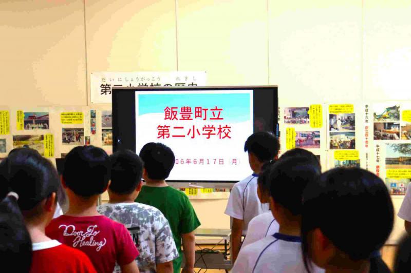 朝の時間に、60周年の創立記念式を行いました。玄関前には国旗も掲げました。児童代表の言葉では「伝統である明るいあいさつとさわやか態度を守っていきましょう」と呼びかけがありました。本校の校名はあと2年足らずでなくなってしまいますが、地域や先輩方の教えは変わりません。「ふるさと大好き 進んで勉強する子ども」の教育目標に向かって、さらにがんばっていきたいものです。