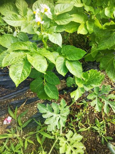 ●ジャガイモと一緒にスイカが伸びてきた