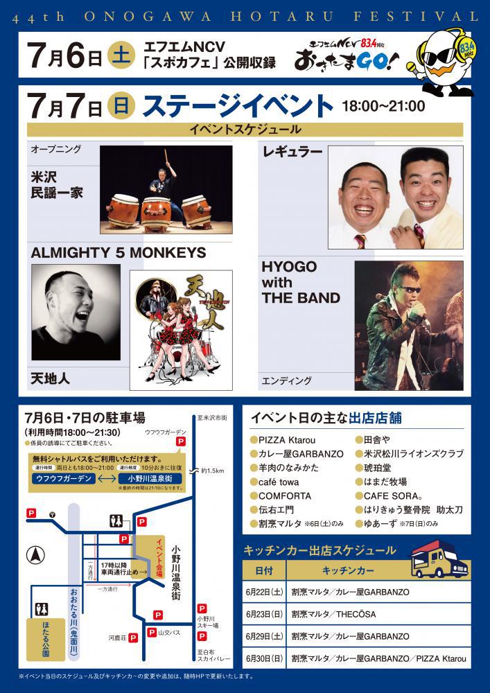 ほたるまつりのチラシができあがりました。イベント日の内容が記載されているので、ぜひ、こちらご覧ください。イベント日の出店者も過去最高で、イベントステージも豊富、特に7日(日)のレギュラーはかなり人が集まりそうなので、気をつけてほしいですね〜ほたるまつりが始まって一週間、多くの方々にお越しいただき、うれしいです。まだまだ、ほたるの季節を楽しんでほしいですね〜