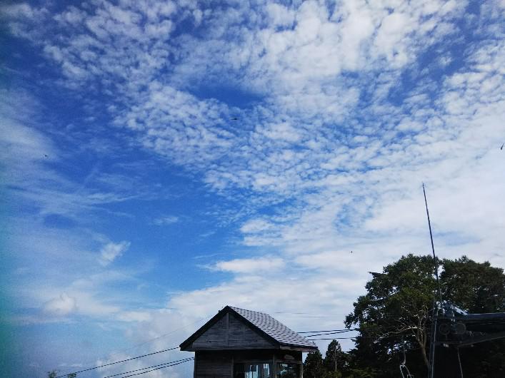 昨日の天元台高原午前中はとても涼しくいい感じ・・でも午後からは気温が上がり高原でも暑かったです・・でも麓からしたら気温は10℃もしたですから・・違いますが・・昨日朝空みると秋ですねー雲が高くなってきました。”天高く馬肥ゆる秋”なんて言葉にもあるように、秋の空は高く感じるもの。”日射は春分の日を境に強まり、秋分の日を境に弱まっていく”日射が強い春は空気が暖まって上昇するため、対流が生まれて地上の土やホコリ、スモッグなどを舞い上がらせてしまう、一方、秋は空気の対流が起こりにくく、チリやホコリなどが空気中に少ないため、空を青々と見せることになるのだそうですよ・・まだまだ残暑厳しいですが秋が確実にやってきております・・