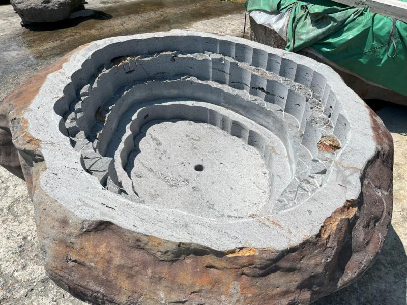 制作中の石風呂です。専用の機械で石を切断して掘削した状態になります。この後は工具を使って手作業で削っていきますが、とても根気と体力のいる工程になります。石の粉塵が勢いよく舞い上がるので防塵マスクは必須です。どんな石風呂が出来上がるのか楽しみにしながら創っていこうと思います。   一つとして同じ表情の無い蔵王の天然石から削り出す石風呂。永い年月の中で石に蓄えられたパワーは心と身体に癒しを与えてくれます。____それはまさに自然からの贈り物。株式会社ざおうコーポレーション 石材部門では蔵王の天然石を使った石風呂を制作・販売しています。ご興味がございましたらぜひ一度展示場へお越しください。https://zao-stone.jp