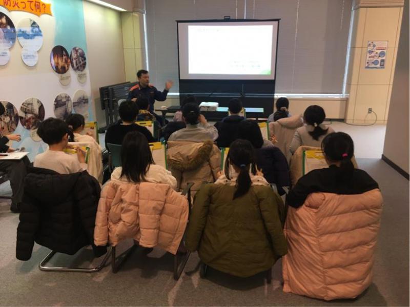 3年生が、社会科の学習で西置賜行政本部に来ています。まずは、消防署の仕事の説明を受けているところです。みんな真剣です。さすがです。