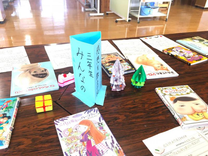 2学期も残すところ10日をきりました。天候も雪の日が多くなっているこの頃です。校舎内では、クリスマスにちなんだ装飾や作品が見られるようになっています。1年教室には、もみの木の作品が掲示されています。図書室もクリスマス仕様に変わりました。来週は、もしかするとこのような光景がさらに増えてくるのかもしれません。