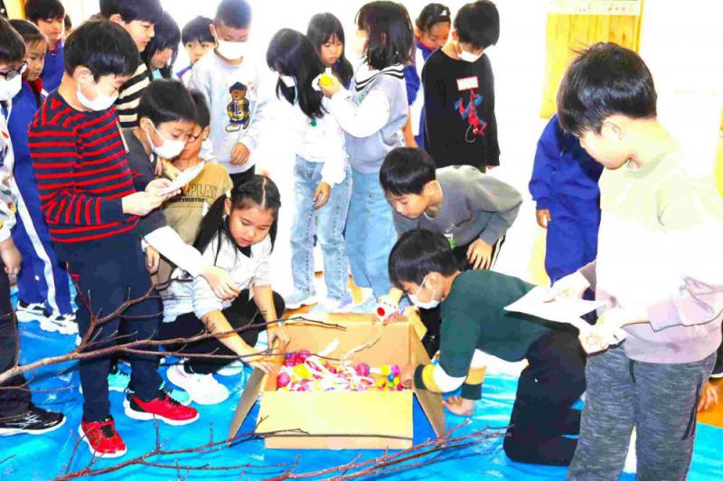 1月8日に、1・2年生がだんご下げを行いました。また、9日には全校生で書初めを行いました。だんご下げは子供たちも楽しそうで、飾りつけもどんどん進んでいきました。書初めは、学校中がし〜んとした中で、全員が集中して取り組んでいることがわかりました。どちらも日本伝統の年中行事です。子供たちには、ぜひこれからの世代にもつないでほしいと願います。