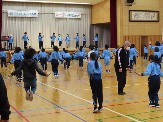 1月21日、今日から、冬の体力アップタイムの取組であるなわとび運動が始まりました。先週の金曜日になわとび運動のねらいややり方について、担当から説明があり、いよいよ今日からスタートです!!種目は2つ。一つ目は時間跳び。同じ技を2分間跳び続けます。もう一つは技跳び。2分間、様々な技にチャレンジします。冬期間のこの時間の頑張りを通して、日常的に体を動かす習慣を作るとともに、体力・運動能力の向上を図っていきます。今日は一回目ということもあり、跳び縄を忘れてきた児童もいました。お願いばかりで恐縮ですが、跳び縄の準備をよろしくお願いいたします。【オリエンテーション】【今日の体力アップタイム】