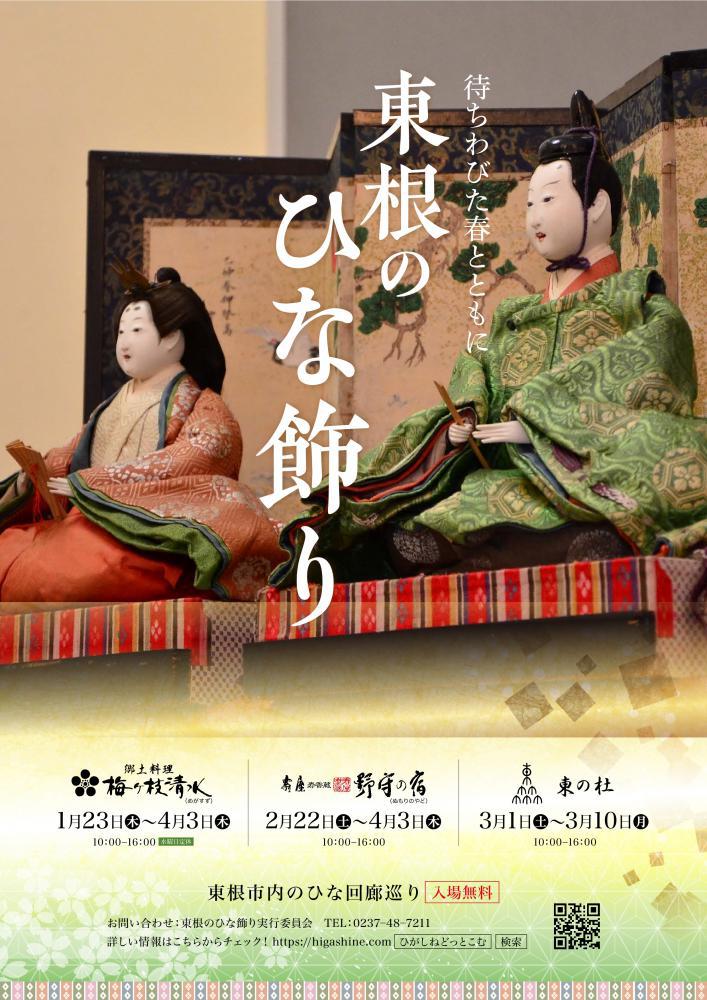 市内3カ所に、古今雛をはじめとする時代雛など、貴重な雛人形が展示されます。ご家族やお友達など、お誘いあわせの上ぜひお越しください。【お問合せ】   東根のひな飾り実行委員会(東の杜)         東根市本丸東3-1 TEL 0237-48-7211【イベント詳細】 山形県公式観光サイト「やまがたへの旅」