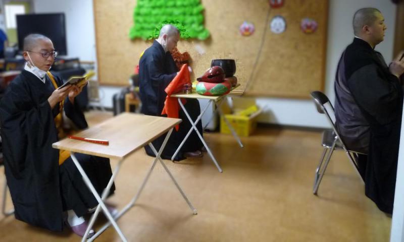 2月5日(水)、 花の里にて涅槃会法要が執り行われました。当施設の生活相談員、主事、介護員にて読経をさせて頂きました。読経後に利用者様に対して、生活相談員より「お釈迦様は陰暦の2月15日、インドのクシナガラの地で80歳の生涯を閉じられた事」「亡くなられたお釈迦様に対して、追悼の意を表して行う法会が涅槃会である事」「一日一日を大切に生きて頂きたい事」「雪も降っており感染症等が流行する時期でもある為、体に気を付けて生活して頂きたい事」等を話して頂きました。利用者様は生活相談員からの話を真剣に聞いておられました。利用者様にも焼香をして頂き、一人一人丁寧に手を合わせておられました。