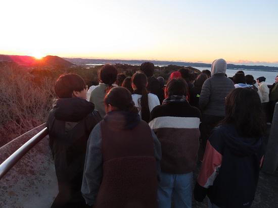 いよいよ最終日。3日目の主な内容は、朝の散歩、自然の家退所式・お別れ式でした。朝の散歩では、近くの展望台に上り、太平洋の彼方から昇る美しい朝日を拝むことができました。また、振り向くと、東京湾の奥には、グラデーションの空に映える日本一の富士山も見ることができました。氷点下の中での散歩でしたが、寒さも吹き飛ぶほどの感動を覚えました。楽しい時間もあっという間に過ぎ去り、いよいよお別れの時です。3日間の思い出を存分に語り合い、後ろ髪を引かれる思いで帰路につきました。千倉小の皆さん、実行委員会、保護者の皆様、本当にお世話になりました。大雪の中、お迎えに来てくださいました保護者の皆様、本当にありがとうございました。