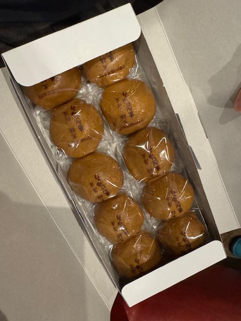 みかどやのまんじゅう、10個入りで1,000円になります。小野川温泉は温泉地、観光地であるので、お土産屋があり、まんじゅうを販売しているのが、みかどや、丸田屋です。うちでは基本的にお部屋のお茶菓子でどちらかのまんじゅうをお出ししています。ぜひ、お土産に購入してほしい品物です〜