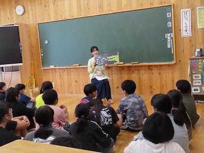 今日の昼の時間 4・6年生にあーすまいりーずさんの読み聞かせがありました。他学年は教室で静かに読書をしています。