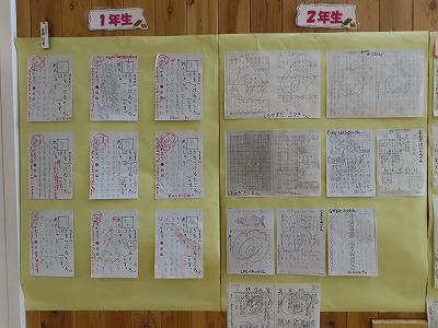 学力充実期間ということもあり、ホールの壁には各学年の自主学習ノートが掲示されています。友達のノートをみて学ぶことはとても大切です。3年生の廊下前に三角コーンに「廊下は歩きましょう」の掲示があります。3年生が自分たちで考えた活動の一つです。走る人が少なくなるかな。まずはやってみることが大切です。