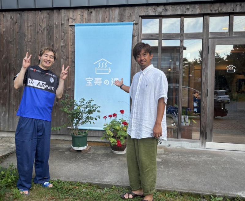 元モンテの選手で今はサッカー解説者の越智隼人さんが温泉入りにいらっしゃいました。小野川温泉を楽しんでいただけたならうれしい限りです。越智さんがXでポストされましたが、うちを念願の場所と表現していただいたのは本当にうれしかった。また、再会する日までがんばっていこう。