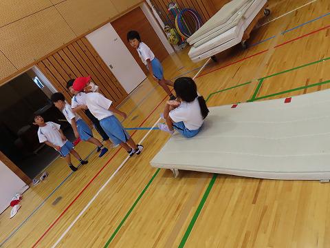 体育館で2年生がマットの学習をしていました。友達の技をタブレットで撮影して、みんなで改善策を練ります。後転用の傾斜のついたマットもありました。個別対応学び合いの体育学習でした。1年生教室では新採幼稚園・こども園の先生方が授業参観のために来校しました。しっかりと学ぶ1年生の姿を見ていただきました。