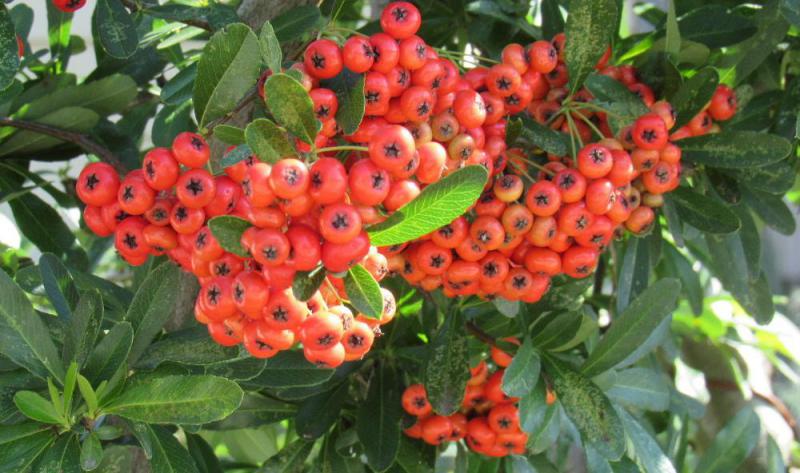●あまり背丈の高くない木に真っ赤な実がなっていました「ピラカンサ」でしょうか 5〜6mmの大きさで熟す前は毒性成分が含まれているそうですが寒くなると毒性が弱まり野鳥の餌となりついばんでいるのをよく見れるそうです 黄色やオレンジ色の実をつける品種もあるとか 秋の庭を彩る実の一つでしょうか