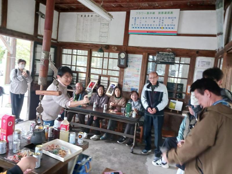 芋煮会の二次会の光景である。2年振りで遊びに来てくれた女性がいる。今日初めて出会った方が、旧友と再会したかのように語り合う姿があった。来春に向けて新たな展開の提案も出していただいた。こうして芋煮会をとおして出会いの輪が広がって来たが、その始まりは2007年(平成19年)の11月の芋煮会だったかもしれない。 → 17年前の芋煮会:おらだの会 元山形鉄道社長であった野村浩志を追悼する冊子が、「偲ぶ会」から出されている。その中に「『ありがとう』の反対語とは?『あたりまえ』ってご存じでしたか?」と題するエッセイがある。「あたりまえ」のことを「ありがたい」ものと考え、「ありがとう」と思うことが大事だ、との論旨である。 思えば広田泉さんや米屋こうじさんとの出会いは、まさに「ありがたい」出会いであった。そして今も、芋煮会やお花見会に来てくれる人がいる。それは「あたりまえ」なことではなく、「ありがたい」ことなのだと改めて思う。 出会いが「縁もゆかりもない人」で終わるか、「ご縁で長いおつきあいになる人」となるかは、感謝の気持ち次第であろう、と野村さんは続けている。追悼誌のサブタイトルは「人生で大切なことを『只見線』が気づかせてくれた」である。駅舎の縁、人生で大切なことを『駅舎』が気づかせてくれた。