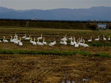 「白鳥の落ち穂拾い」が見られます。
