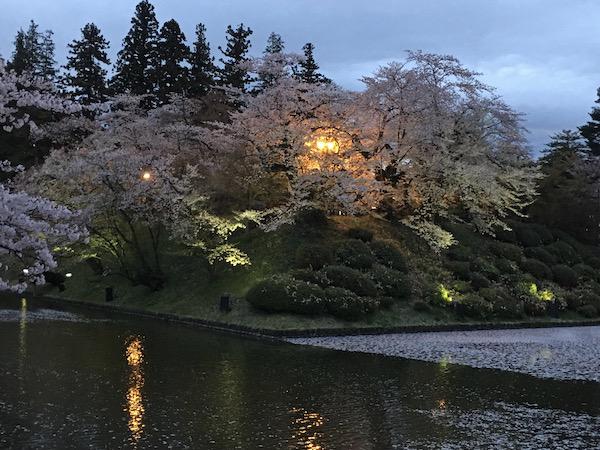 ●2020-4-29 上杉神社のお堀に浮かぶ桜