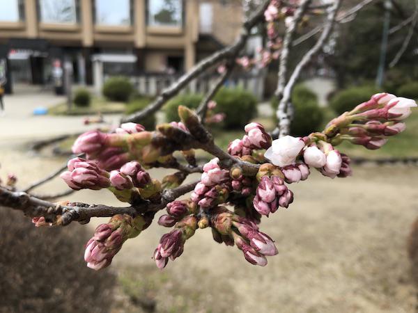 標準木はまだ蕾ですが、膨らんでピンク色です。もうすぐ開花です。