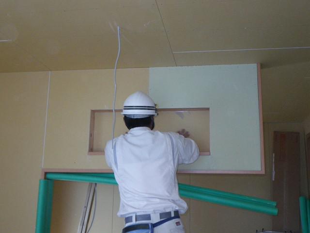 こちらはお客様からの要望で壁面に飾棚を作っています。