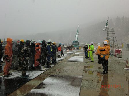 12月1日 雪の降る中で朝礼スタートです。