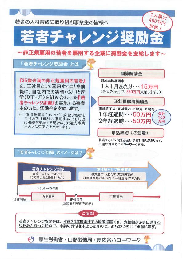 『若者チャレンジ訓練』を実施する事業主の方に、奨励金を支給します。