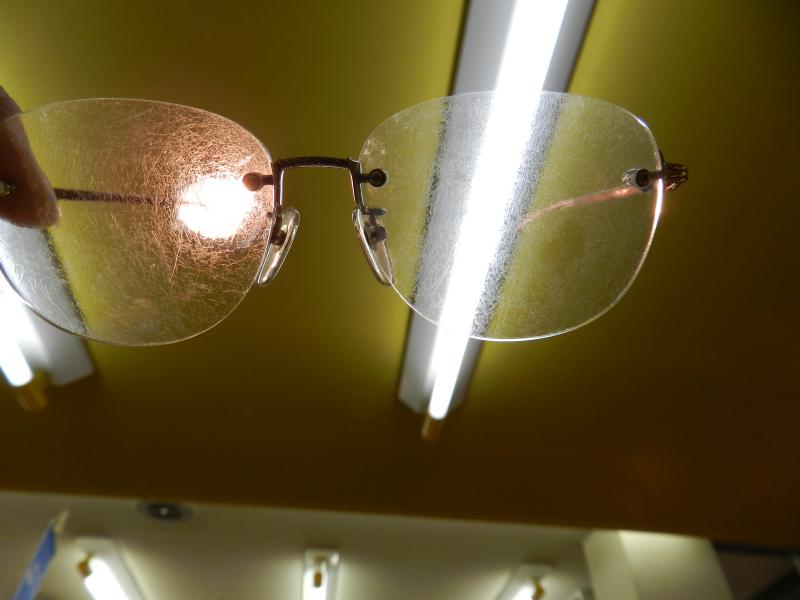 置くとメガネのコーティグが波をうったようになったり、
