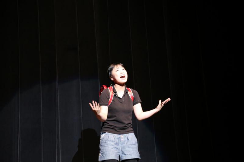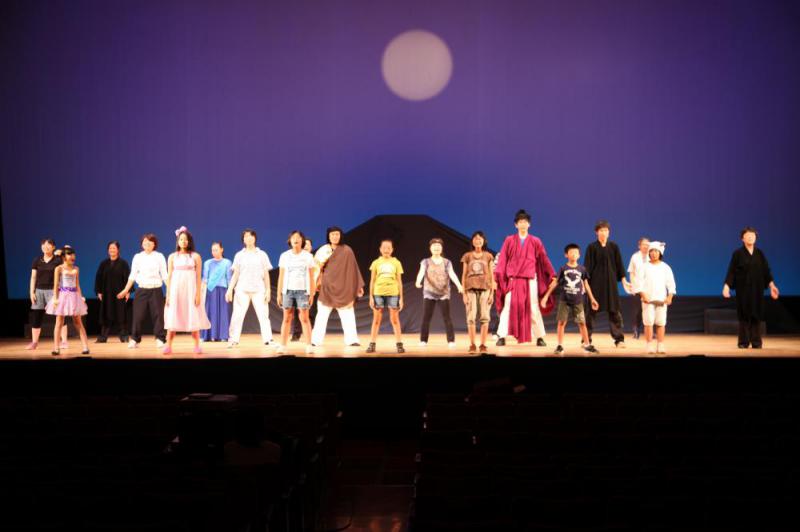 市民参加ミュジカル「ハッピーバースデー〜命かがやく瞬間〜」2013年バージョン舞台写真です。チームツナミ&公益文科大学演劇部ねこじゃらしのメンバー大活躍したよ。公文大演劇部猫たちは、準主役ダイスケ(小学生を演じるのに苦労!)ミツオ(最後の一週間は、無我夢中。)音響(一人で、200以上のきっかけのBGMとSDをこなすスーパーです。)を担当。そのほか、大道具の出し入れも。そして、チームツナミは、いじめられっこ順子の父役と死神と舞台監督(これも、すーぱーです。)橋本先生役と死神(テンポアップのダンスに合わせながらも不気味さをかもしてこわかったね。)と大道具と制作で。仕事で休めなかったメンバーの分まで働きました。