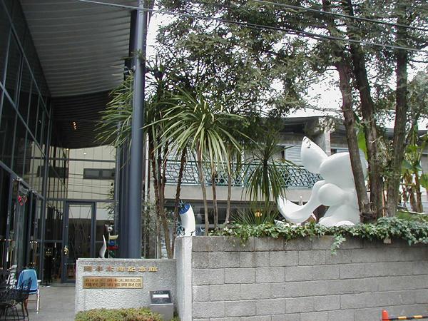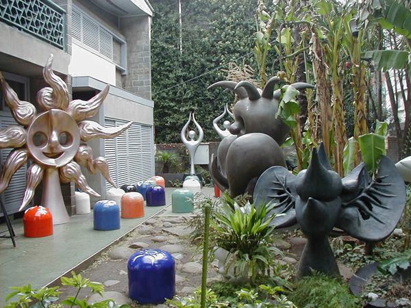 庭に置かれた作品と観葉樹が出迎えてくれました。