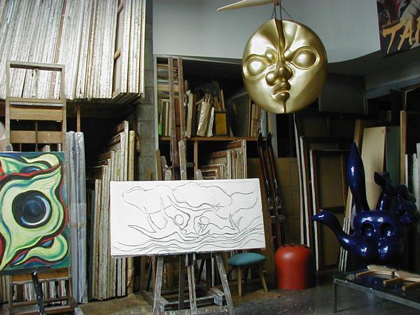 上に飾ってあるこれは、太陽の塔の顔でしょうか?