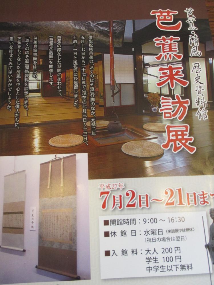 尾花沢市 芭蕉清風歴史資料館にて7月2日〜21日 まで松尾芭蕉が奥の細道紀行で7月3日〜13日までの10日間尾花沢市に逗留した期間に合わせ芭蕉真筆書簡をはじめ「奥の細道」関連資料を展示いたします詳しくは ttp://www.city.obanazawa.yamagata.jp/2251.html