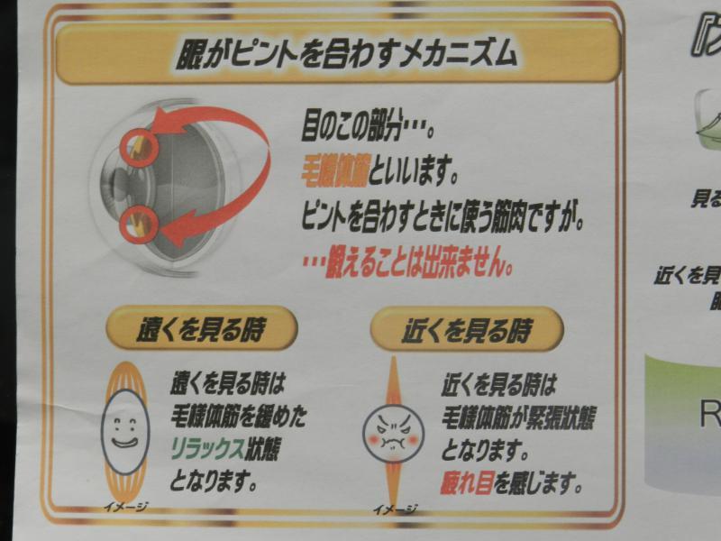 とよく耳にしますが、眼が悪くなったのではなくて、眼の毛様体筋と言う筋肉が楽に
