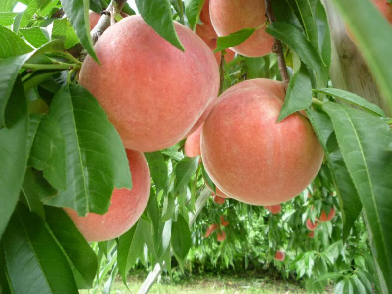 みなさまお持たせいたしました。かたい桃「おどろき」オレンジの屋根特設テントで販売中です!