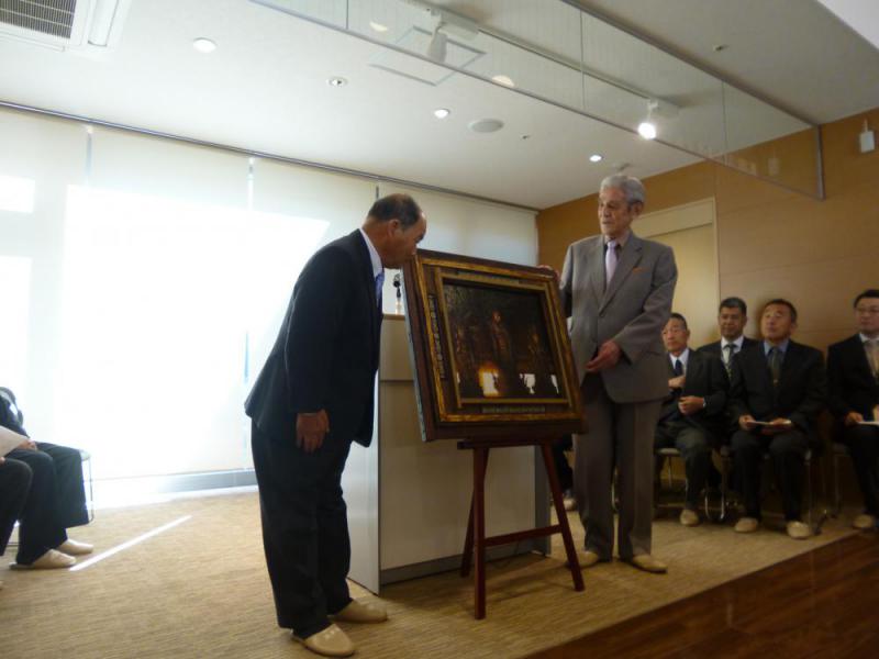 本日9月30日、秋晴れのなか和合荘の敬老会が開催されました。今年は、朝日町の副町長や和合地区の区長の皆様に加え、神奈川県からもご来賓を迎えました。敬老会の冒頭に贈呈式を行い、東京日本橋ライオンズクラブ立川福祉基金様からセキュリティ対策強化事業に対して助成していただいたご報告と、三重県の油彩画家 小田朝繁様 から寄贈された仏像画のお披露目をいたしました。小田様からは平成27年に引き続き、ありがたい仏像画をいただきました。敬老会の催し物は宮城県より、盲人のアコーディオン奏者の 井上順勝様 と、たけのこ会所属の尺八と三味線奏者の方が来られました。素晴らしい演奏に加え、歌や踊りを披露していただき、入居者さんと一緒になって歌った花笠音頭や青い山脈では、皆さん手拍子をして笑顔で楽しまれました。お昼は、入居者さんは松花堂弁当(赤飯、芋煮、天ぷら、小松菜と菊のお浸し、炊き合せ、抹茶水羊羹)をいただきました。来荘されたご家族様には、赤飯と芋煮をご用意いたしました。「和合荘の畑で収穫した里芋を使用しています。」との説明に、とてもおいしいと皆様大変喜ばれていました。来年も、皆様に楽しんでいただけるよう努めてまいります。来荘いただいたご来賓の皆様、ご家族の皆様、ありがとうございました。