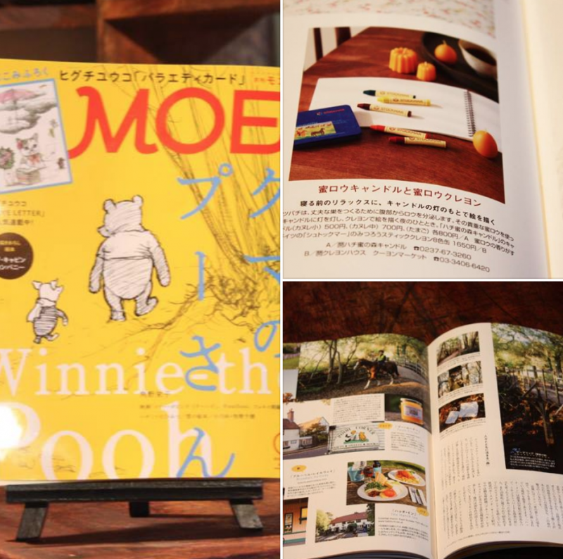 「月刊MOE」に再び紹介していただきました。本場ドイツのシュットックマーのクレヨンとコラボ。光栄です。なにより、大好きなクマのプーさん特集号でした。20年前に訪ねたことのある、100エーカーの森や棒投げブリッジ、プーコーナーなどが載っていて懐かしく思い出されました。また行きたくなりました^^