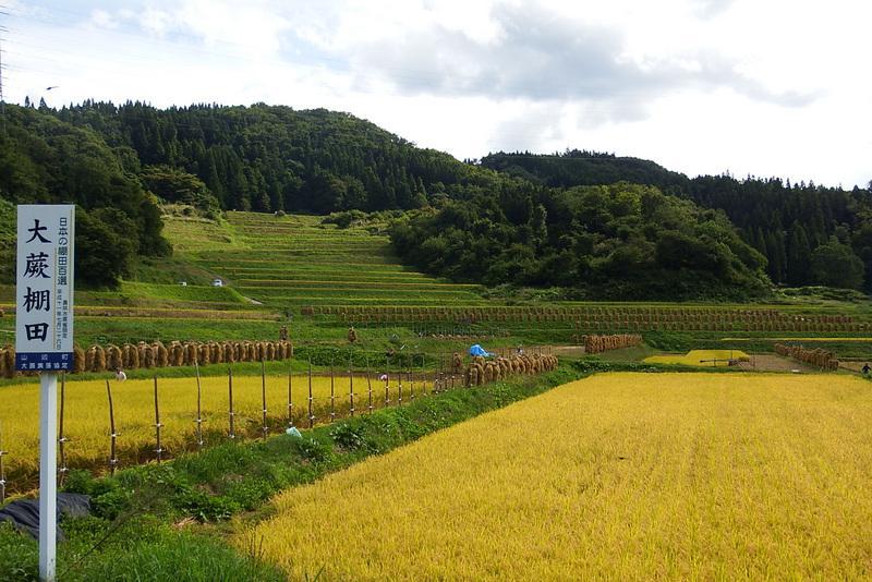 山辺町大蕨地区の棚田は、「日本の棚田百選」に認定され、昔ながらの田園風景を残しています。9月20日現在は、稲穂が黄金色に実り、稲刈りが着々と進んでいました。来週からは、今では珍しくなった稲杭いが立ち並ぶ風景が見ることができそうです。