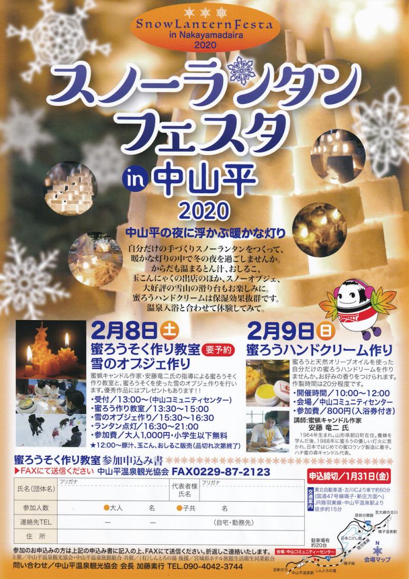 今年はゆっくり泊まりがけでハチ蜜の森キャンドルと中山平温泉をご堪能ください!