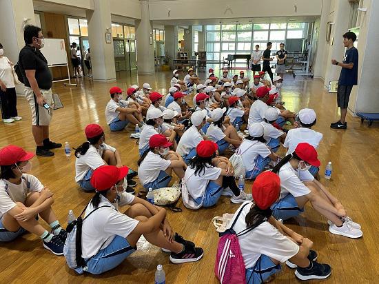 8月29日、6年生が飯豊中学校の運動会に参加してきました。まずは、応援合戦を間近で見せていただきました。迫力ある応援、きびきびとした態度、そして心を一つにした集団美…。先輩の姿に感動しました。そのあとは、青赤対抗のまり入れに参加させていただきました。最初は6年生のみの対決。かごが高く、なかなか届かなかったり、入らなかったりしましたが、中学生の応援を受けながら最後まで一生懸命にがんばりました。最後は中学生と一緒に力を合わせてのまり入れ。とても楽しいひと時を過ごすことができました。これから行われる本校の運動会でも、今回先輩方から学んだ数々を心に留め、最高の運動を作り上げていくことを誓い合いました。