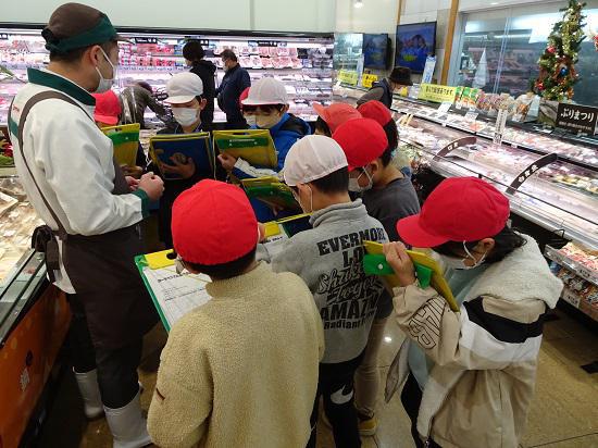 12月8日、社会科の勉強で、3年生がスーパーマーケット見学に出かけてきました。お店で働く人からお話を聞いたり、疑問に思うことをインタビューしたりと、見学のめあてを意識しながら、真剣に学習していました。スーパーの方の特別なお計らいで、バックヤードにも入らせてもらい、お店の裏側の秘密もたくさん見たり聞いたりすることができました。貴重な体験でした。この見学で学んだことを生かして、これからまとめの学習を行います。ご協力くださいましたスーパーマーケットの皆様に心より感謝申し上げます。